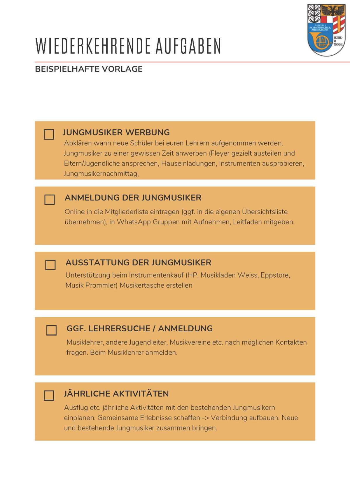 Wiederkehrende Aufgaben (beispielhafte Vorlage):