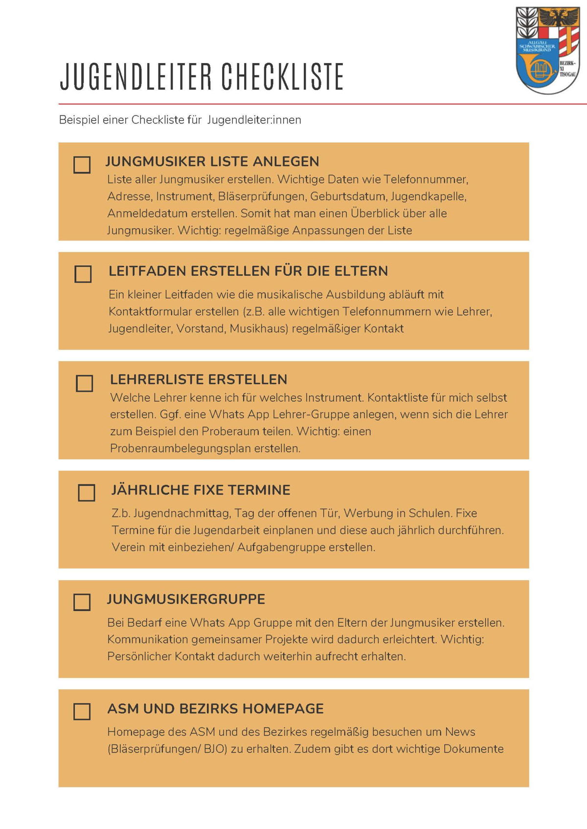 Checkliste (beispielhafte Vorlage):
