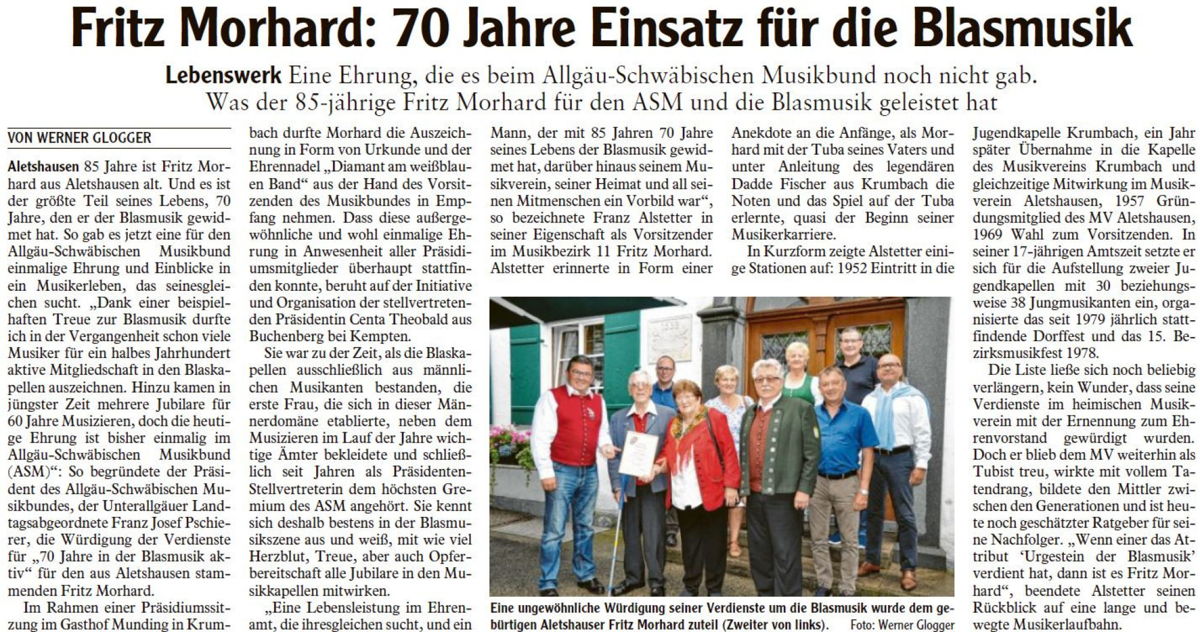 - Bericht der Mittelschwäbischen Nachrichten vom 27. Juli 2021 -